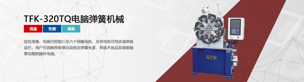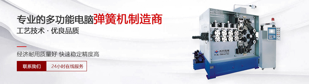 東莞市西田彈簧機械有限公司,位于美麗的珠江畔,中國最具魅力城市——東莞市,地理位置優(yōu)越,交通方便。 東莞市西田彈簧機械有限公司是集彈簧設(shè)備研發(fā)、測試、制造、銷售于一體的民營科技企業(yè),生產(chǎn)的電腦彈簧機型號有:TCK-208N/Y壓簧機、TCK-208B壓簧機、TCK-220A/226A壓簧機、TCK-235A/335A壓簧機、TCK-350A/550A壓簧機、TCK-580A壓簧機、TFK-320TQ/620TQ數(shù)控彈簧機、TFK-330/335TQ數(shù)控彈簧機、TFK-340/350TQ數(shù)控彈簧機等系列,彈簧機繞制的鋼線直徑為0.15-8.0毫米,可繞制拉簧、扭簧、壓簧、異形簧等各式彈簧......